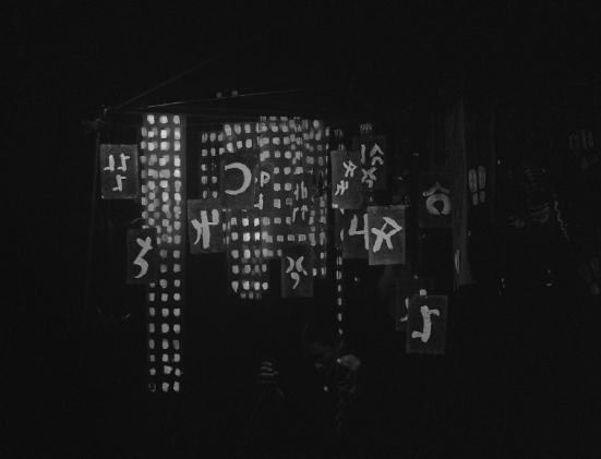 Қойылым емдік жорамен ашылады. Бөлек дыбыстардан басталған импровизация перформанс қатысушыларымен жалғасып, тығыз дыбыстық ланшафтқа айналады.